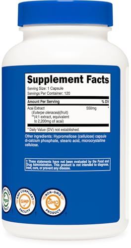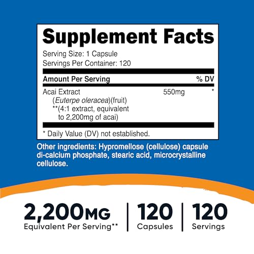 Nutricost Acai Extract 2,200mg, 120 Vegetarian Capsules (Euterpe Oleracea) from 550mg of 4:1 Extract – Non-GMO, Gluten Free