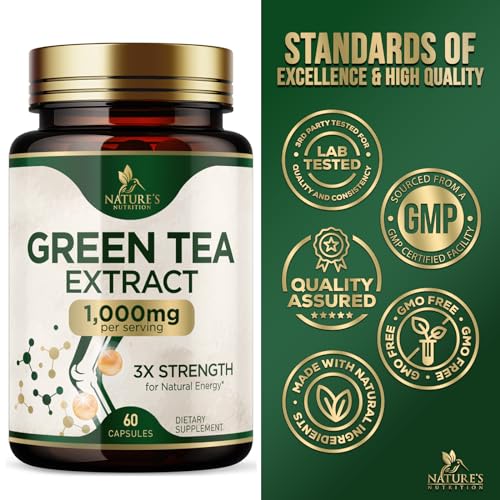 EXTRA STRENGTH EGCG FORMULA: Nature’s Nutrition offers a potent 1000mg of Green Tea Extract Pills, standardized to 98% EGCG; This triple-strength formula delivers superior antioxidants and polyphenols, making our EGCG green tea extract essential for your health routine