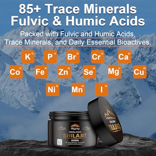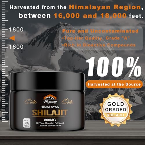 Shilajit Pure Himalayan Organic Resin – 800mg Gold Grade Shilajit Resin with Fulvic Acid & 85+ Trace Minerals Complex for Energy, Strength & Immunity, Shilajit for Men & Women, 800mg