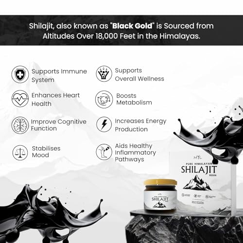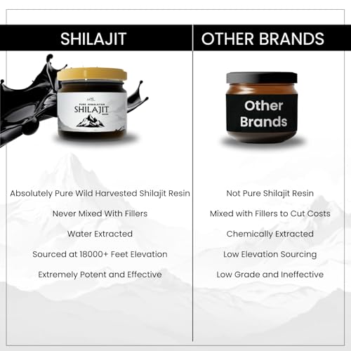 Shilajit Pure Himalayan Organic Source: This Shilajit is sourced from the Himalayan Mountains at 18,000+ ft altitude, packed with 85+ trace minerals and fulvic acid.